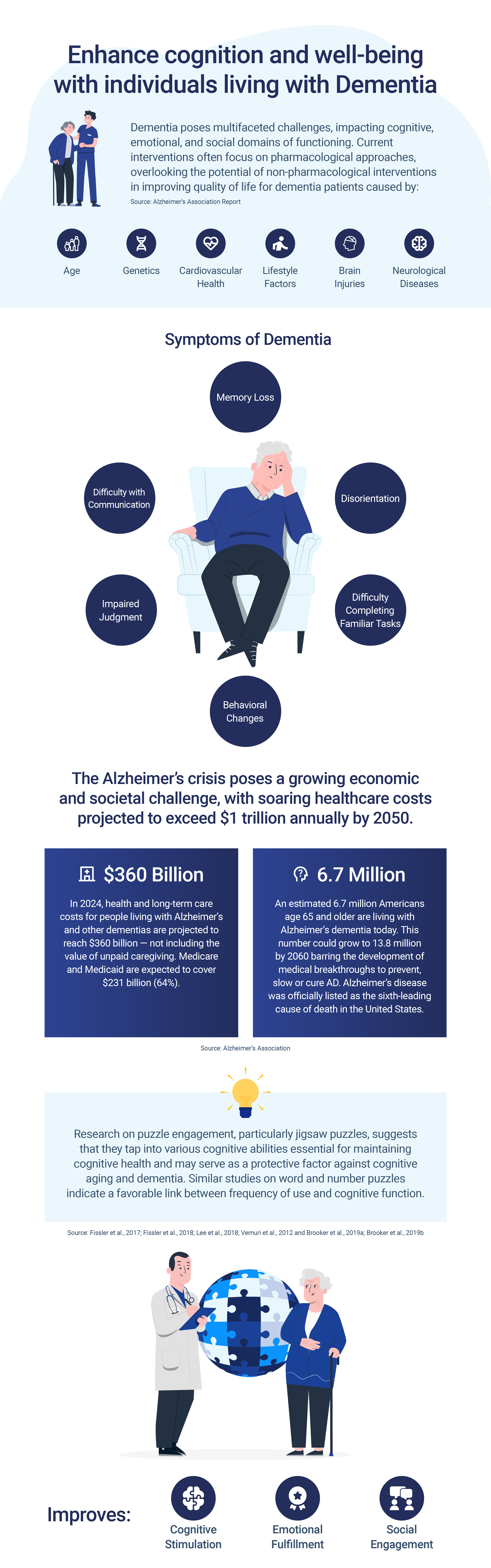 Learn about the science in the following white papers for Human Resource professionals and Clinicians working with elderly patients. The comprehensive analysis delves into the psychological, physiological, and cognitive advantages of puzzle engagement, highlighting how Craft Pilot's patent pending Orb-ix™ supports holistic well-being. Whether you're crafting a new approach for a corporate wellness initiative or seeking non-intrusive options for dementia care programs, Orb-ix™ delivers a solution and proven benefits to elevate mental wellness.